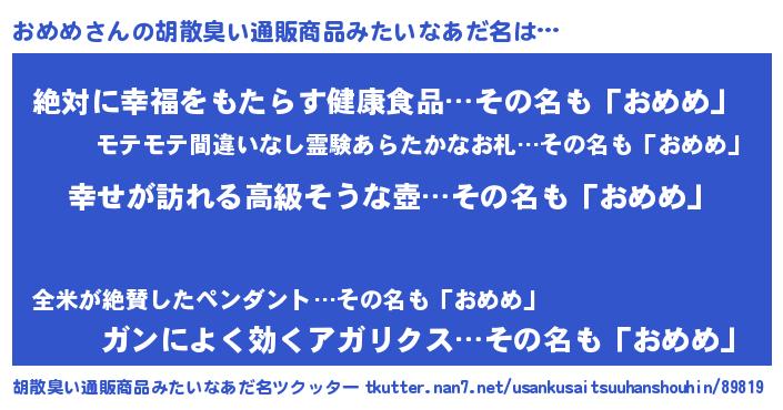 | 女子向けラノベタイトル風あだ名 | 『おめめの雑貨屋さん』『闇のおめめ』 |