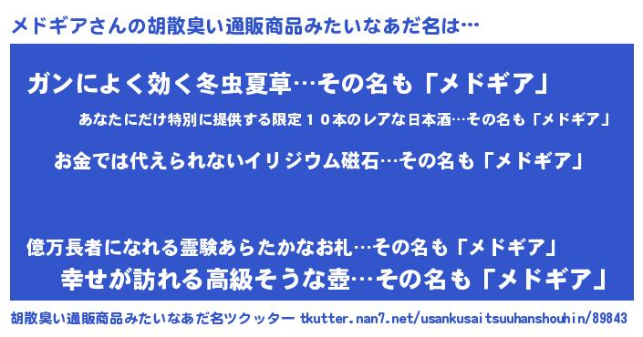 | 意味不明あだ名 | 『眠気覚ましガムメドギア味』 |