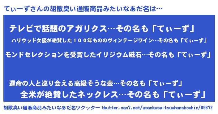 | ヘコむあだ名 | 『てぃ太郎』『豆乳』『てぃにゅー』 |