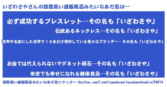 | 男性向けラノベタイトル風あだ名 | 『魔弾の王といざわさや』 |