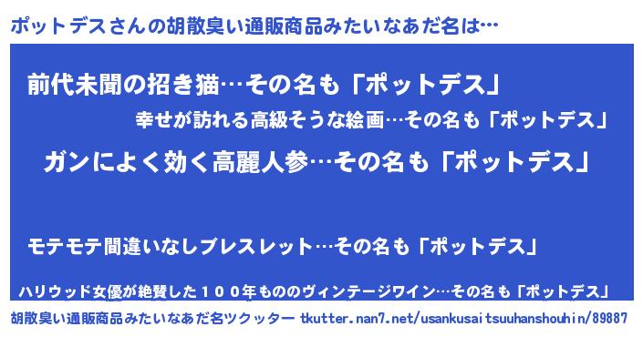 | 意味不明あだ名 | 『自称ポットデス』『永久保存ポットデス』 |