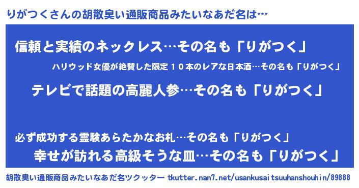 | 意味不明あだ名 | 『自称りがつく』『りがつくフォーエバー』 |