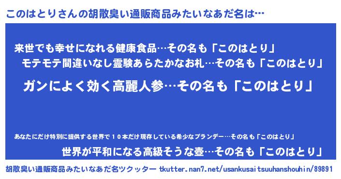 | 意味不明あだ名 | 『自称このはとり』『永久保存このはとり』 |