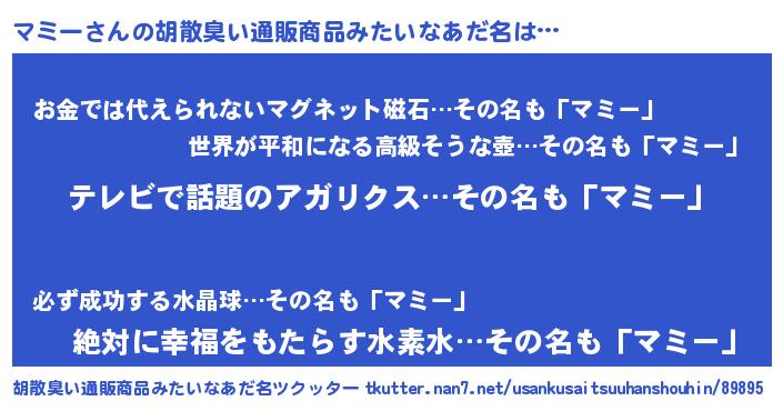 | ヘコむあだ名 | 『マミー(笑)』『なまこ酢』『マミを』 |