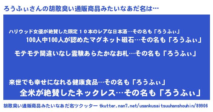 | ヘコむあだ名 | 『ろうっふぃ~』『ろう太郎』 |
