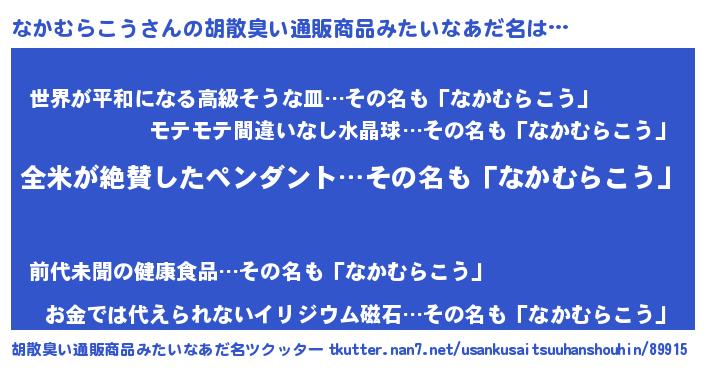 | 男性向けラノベタイトル風あだ名 | 『なかむらこうの嫁は女の子じゃないと思った?』 |