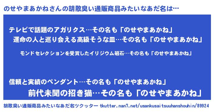 | 伝説のあだ名 | 『救世主となる占い師のせやまあかね』 |