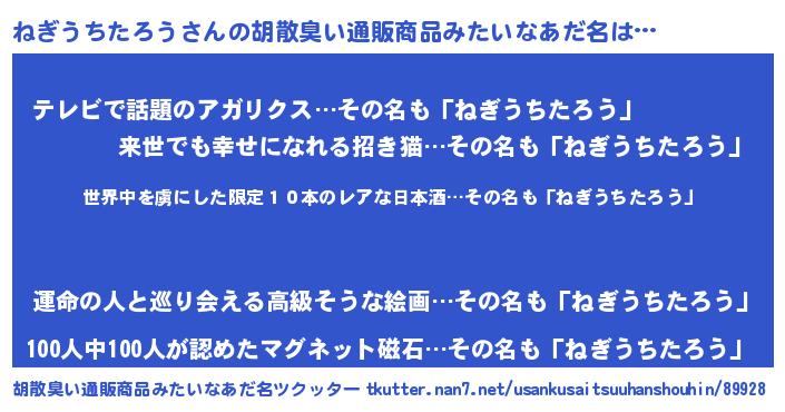 | 欧米人風あだ名 | 『ダレノガレねぎうちたろう』 |