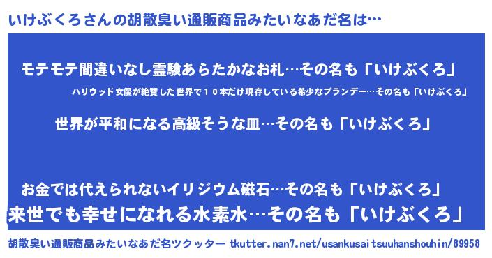 | 意味不明あだ名 | 『いけぶくろフォーエバー』 |