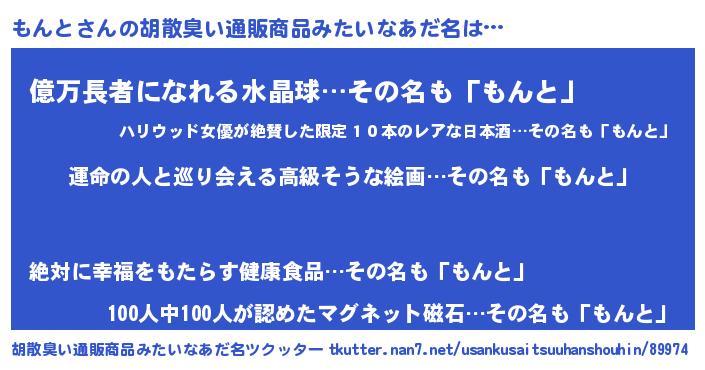 | 意味不明あだ名 | 『もんとフォーエバー』『ペロリンもんと』 |