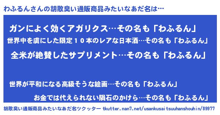 わふるんさんの胡散臭い通販商品みたいなあだ名をツクッター!