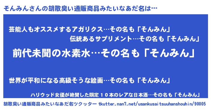 | 意味不明あだ名 | 『永久保存そんみん』『自称そんみん』 |