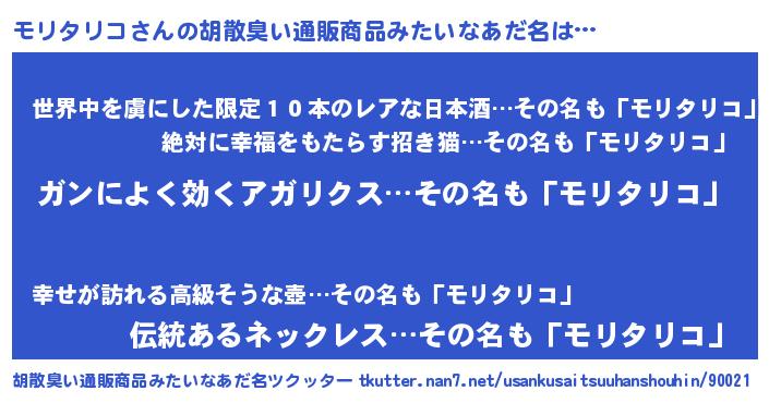 | 意味不明あだ名 | 『自称モリタリコ』『永久保存モリタリコ』 |