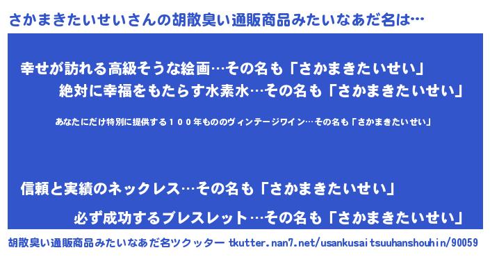 | 意味不明あだ名 | 『住所不定無職さかまきたいせい(7歳)』 |