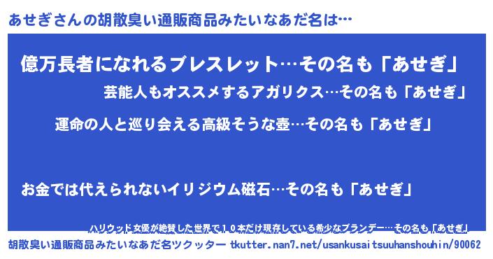 | 意味不明あだ名 | 『あせぎフォーエバー』『ペロリンあせぎ』 |