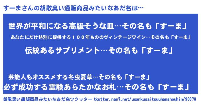 | 意味不明あだ名 | 『とにかく怪しいすーま』 |