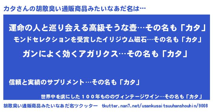 | 男性向けラノベタイトル風あだ名 | 『はたらくカタさま!』『緋弾のカタ』 |