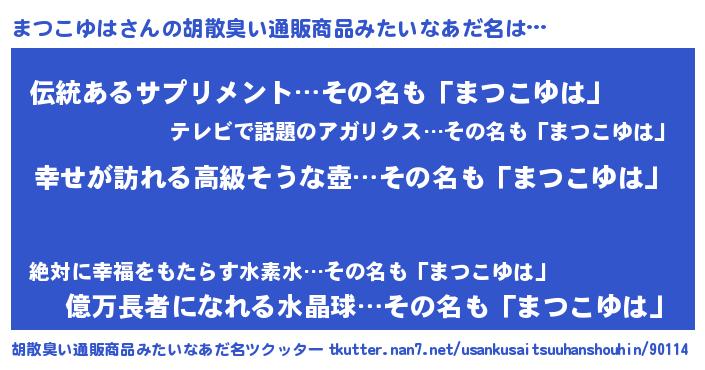 | 伝説のあだ名 | 『秘められし忍者まつこゆは』 |
