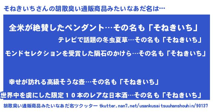 | 欧米人風あだ名 | 『アンジェラ・そねきいち』 |