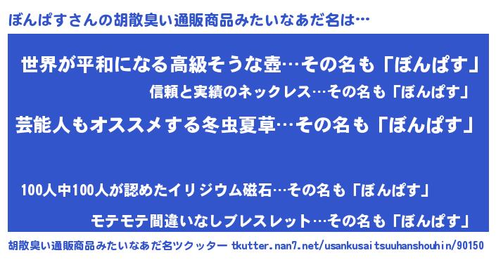 | 意味不明あだ名 | 『自称ぼんぱす』『ぼんぱすフォーエバー』 |