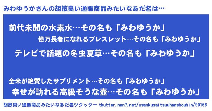 | 意味不明あだ名 | 『自称みわゆうか』『永久保存みわゆうか』 |