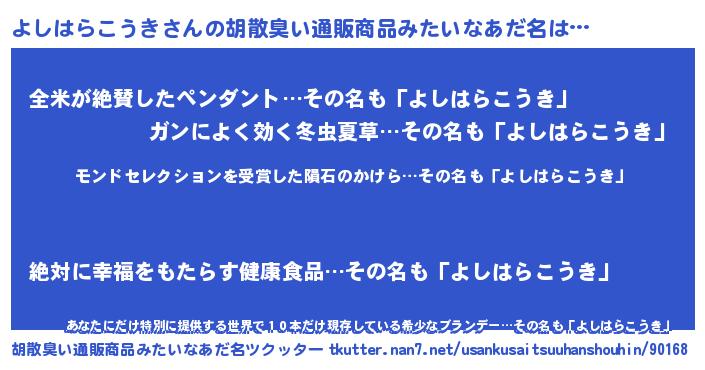 | ヘコむあだ名 | 『よしっぺ』『よしはらこうき(遠い目)』 |