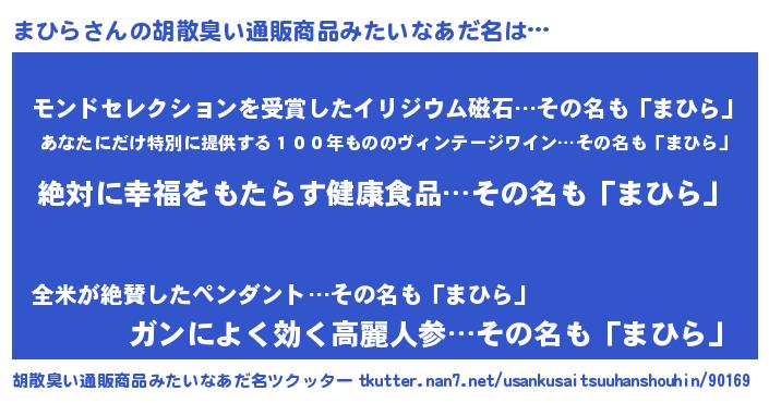| 意味不明あだ名 | 『永久保存まひら』『めかぶ科まひら属』 |