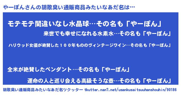 | ヘコむあだ名 | 『やーにー』『なまこ酢』『やーお』 |