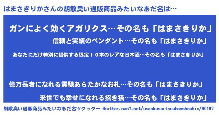 はまさきりかさんの胡散臭い通販商品みたいなあだ名をツクッター!