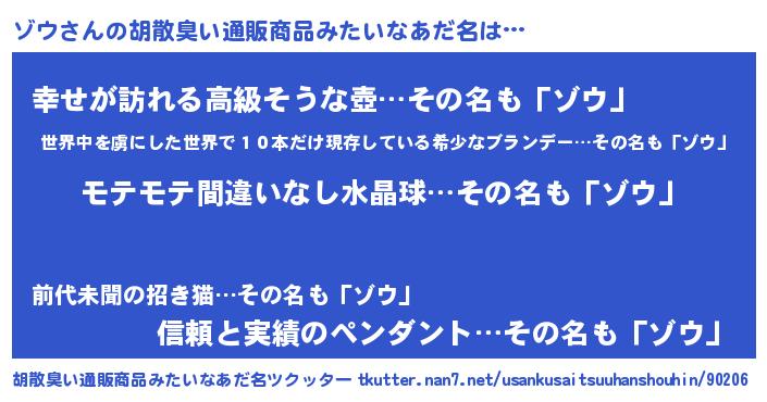 | ピコ太郎風あだ名 | 『ゾコ二郎』『ピゾ五郎』『ゾウ四郎』 |