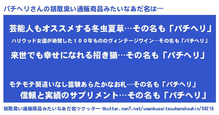 | ヘコむあだ名 | 『パチヘリ(小並感)』『パチっちょ』 |