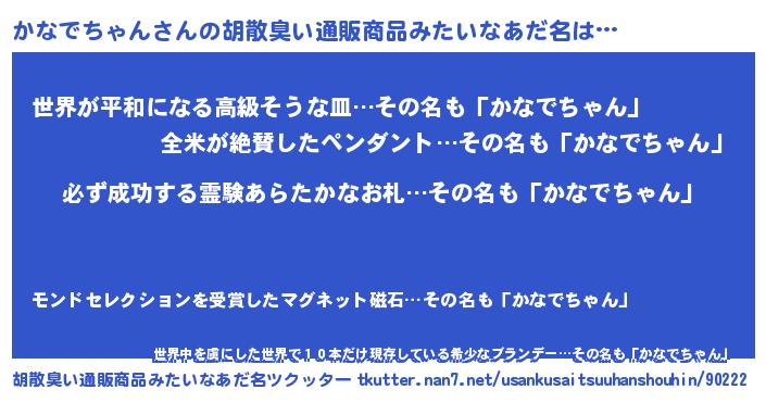 | 伝説のあだ名 | 『伝説のスナイパーかなでちゃん』 |