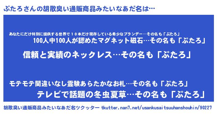 | 意味不明あだ名 | 『とにかく怪しいぷたろ』『自称ぷたろ』 |