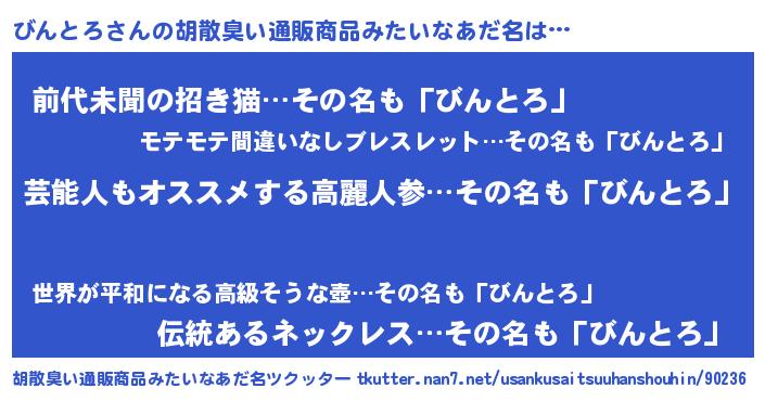 | ヘコむあだ名 | 『びんとろ(笑)』『びんを』 |