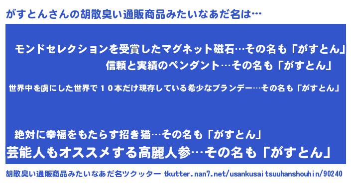 | ヘコむあだ名 | 『がすぷりん』『がすとん(遠い目)』 |