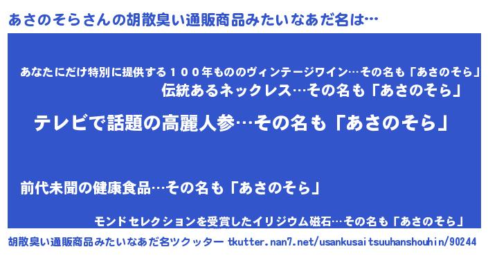 | 意味不明あだ名 | 『自称あさのそら』『永久保存あさのそら』 |