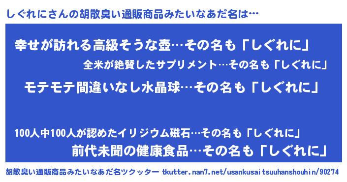 | 男性向けラノベタイトル風あだ名 | 『しぐれにの憂鬱』 |