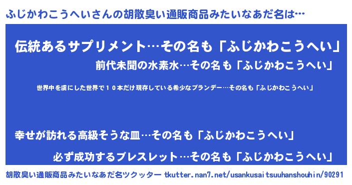 | 意味不明あだ名 | 『住所不定無職ふじかわこうへい(98歳)』 |