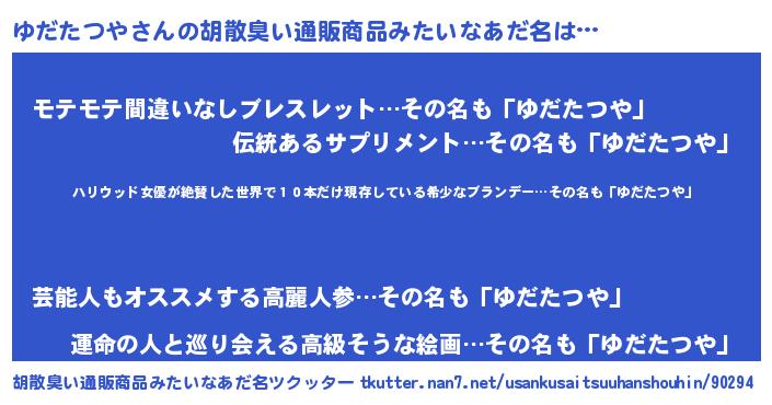| 意味不明あだ名 | 『住所不定無職ゆだたつや(77歳)』 |