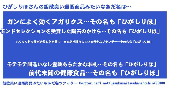 | ヘコむあだ名 | 『ひがしりほ(苦笑)』『ひがにゅー』 |