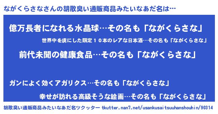 | ヘコむあだ名 | 『ながくらさな(笑)』『ながにゅー』 |