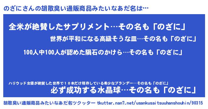 | ヘコむあだ名 | 『のざぷりん』『のざもー』 |