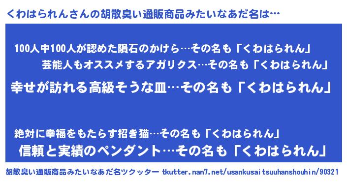| 意味不明あだ名 | 『くわはられんフォーエバー』 |