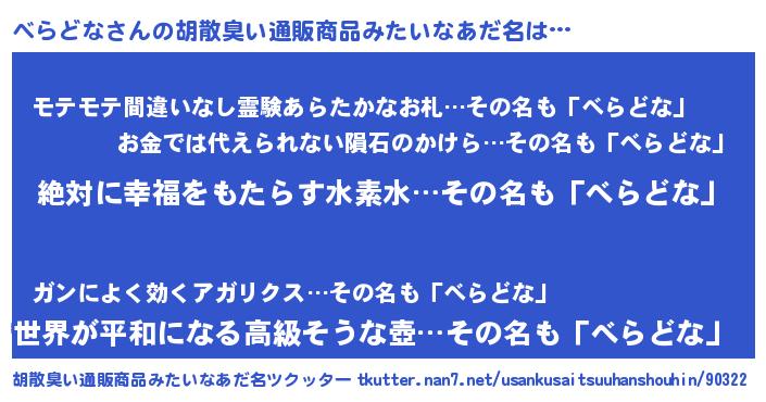 べらどなさんの胡散臭い通販商品みたいなあだ名をツクッター!