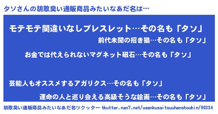 | ヘコむあだ名 | 『タソふぇ~』『豆乳』『タソっ子』 |