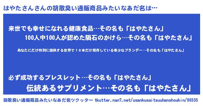 | ヘコむあだ名 | 『はやたさん(苦笑)』『はや太郎』 |