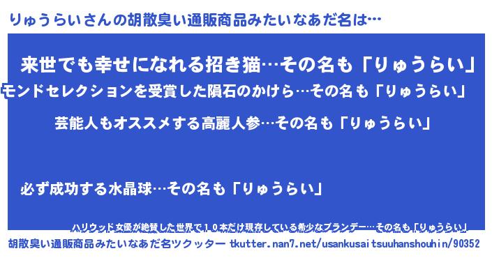 | ヘコむあだ名 | 『りゅうらい(笑)』『りゅにゅー』 |