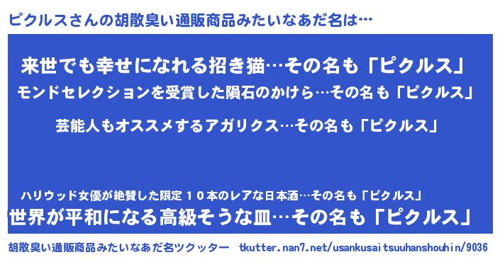 | ヘコむあだ名 | 『ピクルス(爆)』『豆乳』『ピクもー』 |