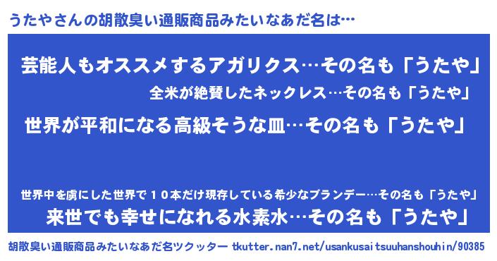 | 意味不明あだ名 | 『うたやフォーエバー』『自称うたや』 |