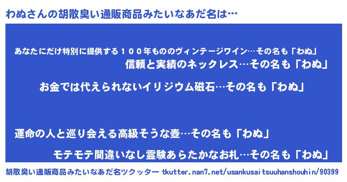 | ポケモン風あだ名 | 『ワックウザ』『ワーヌイ』『ヒワヌ』 |